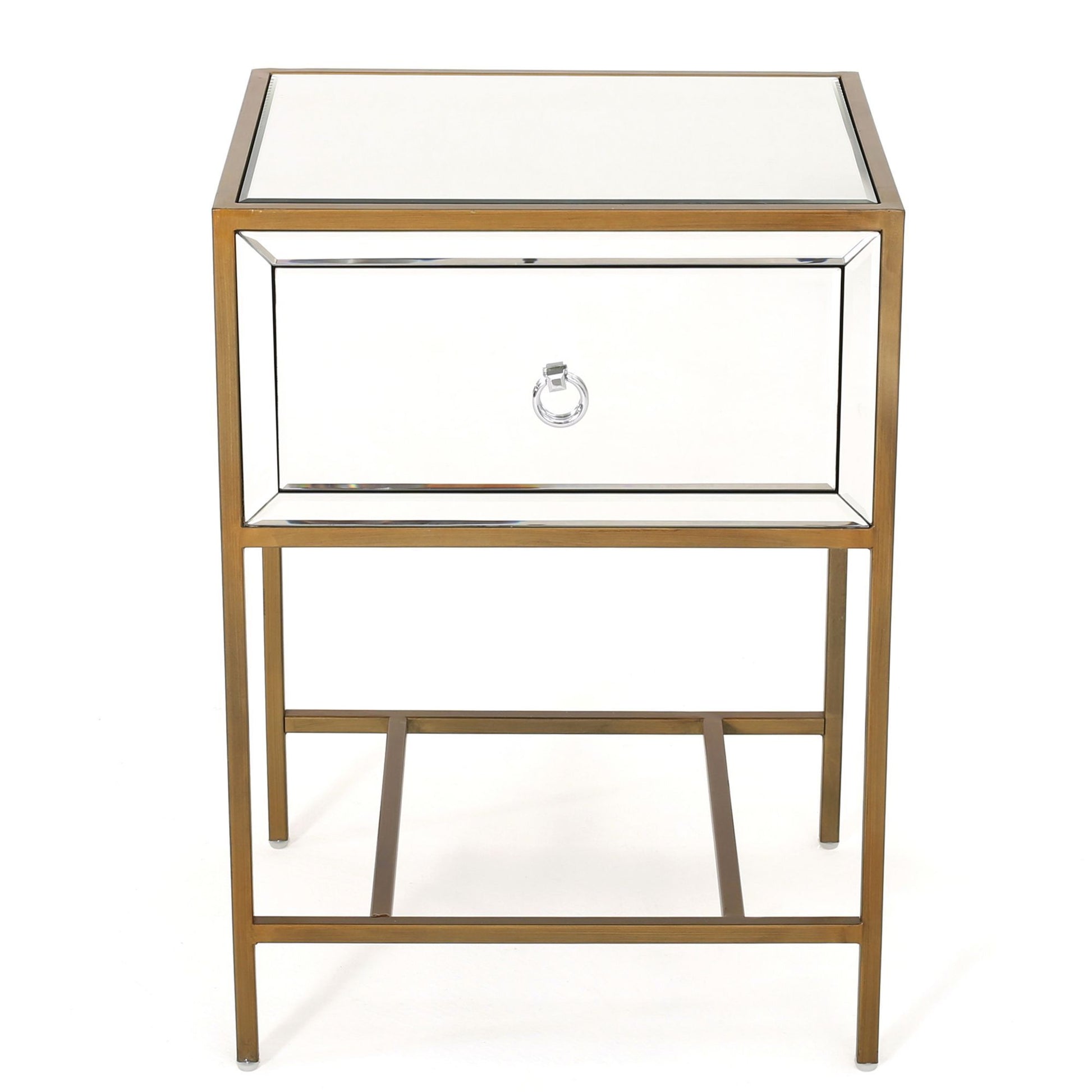 - Enjoy this stylish single drawer side table in any and every room where natural light is the chosen lighting source. This side table features a winning finish and the mirror plates on the majority of the table give a radiant finish in the light.