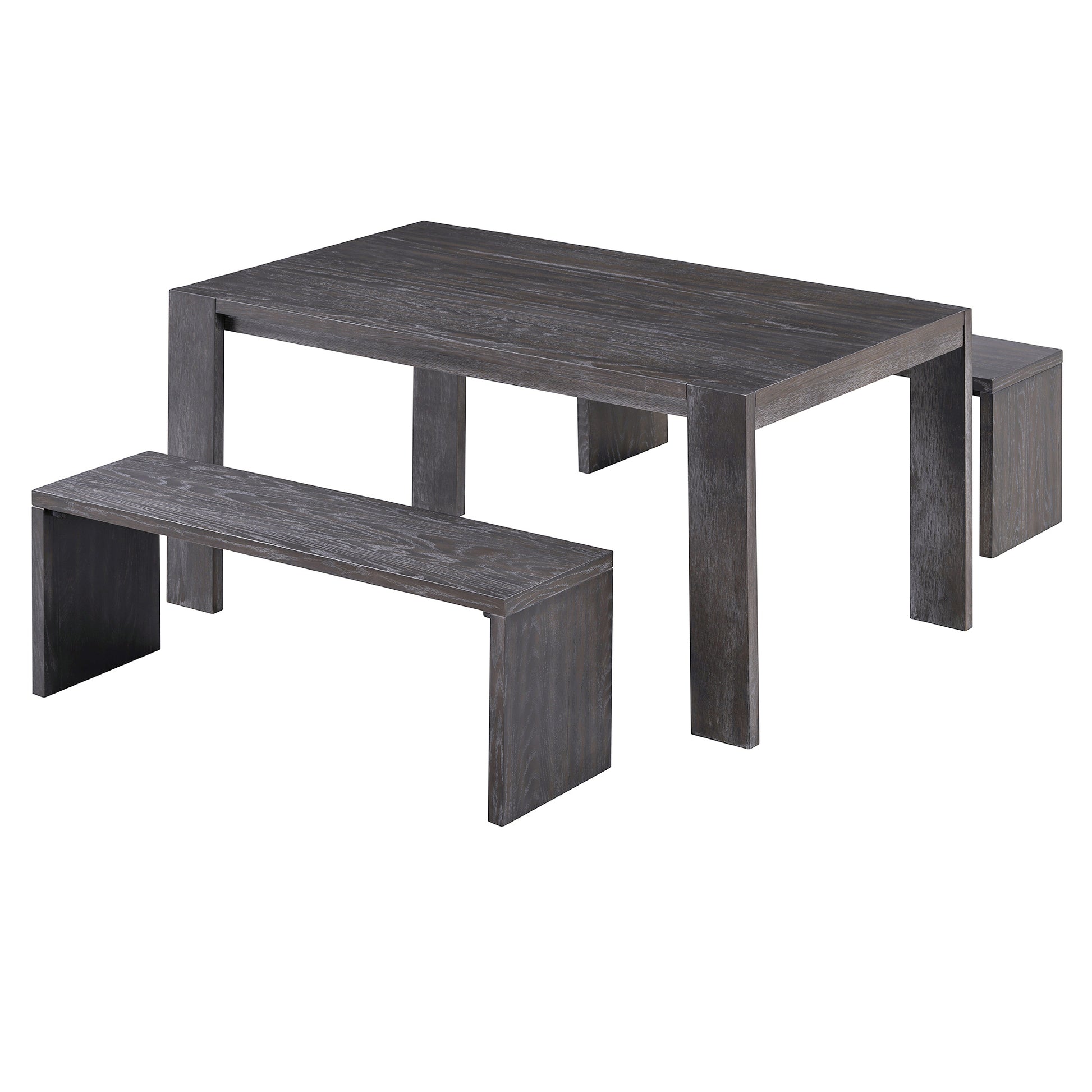 - 3-piece Dining Set: A dining table and two benches Included. The two benches can be completely placed under the table, increasing space utilization. The bench design replaces the traditional dining chairs, not only increasing the seating capacity, but also making the space around the dining table more open and transparent.