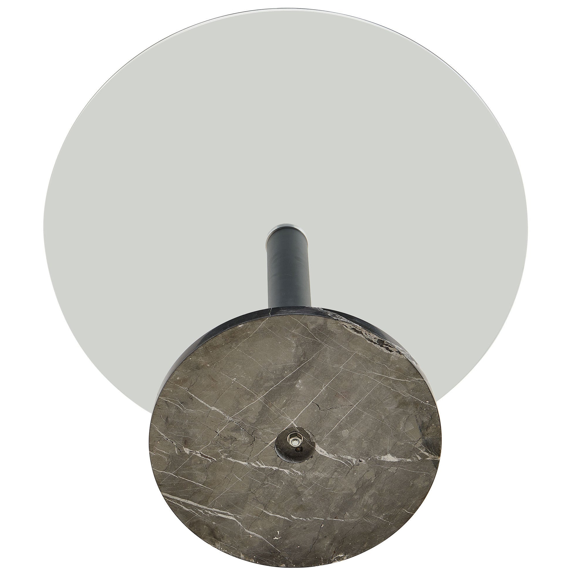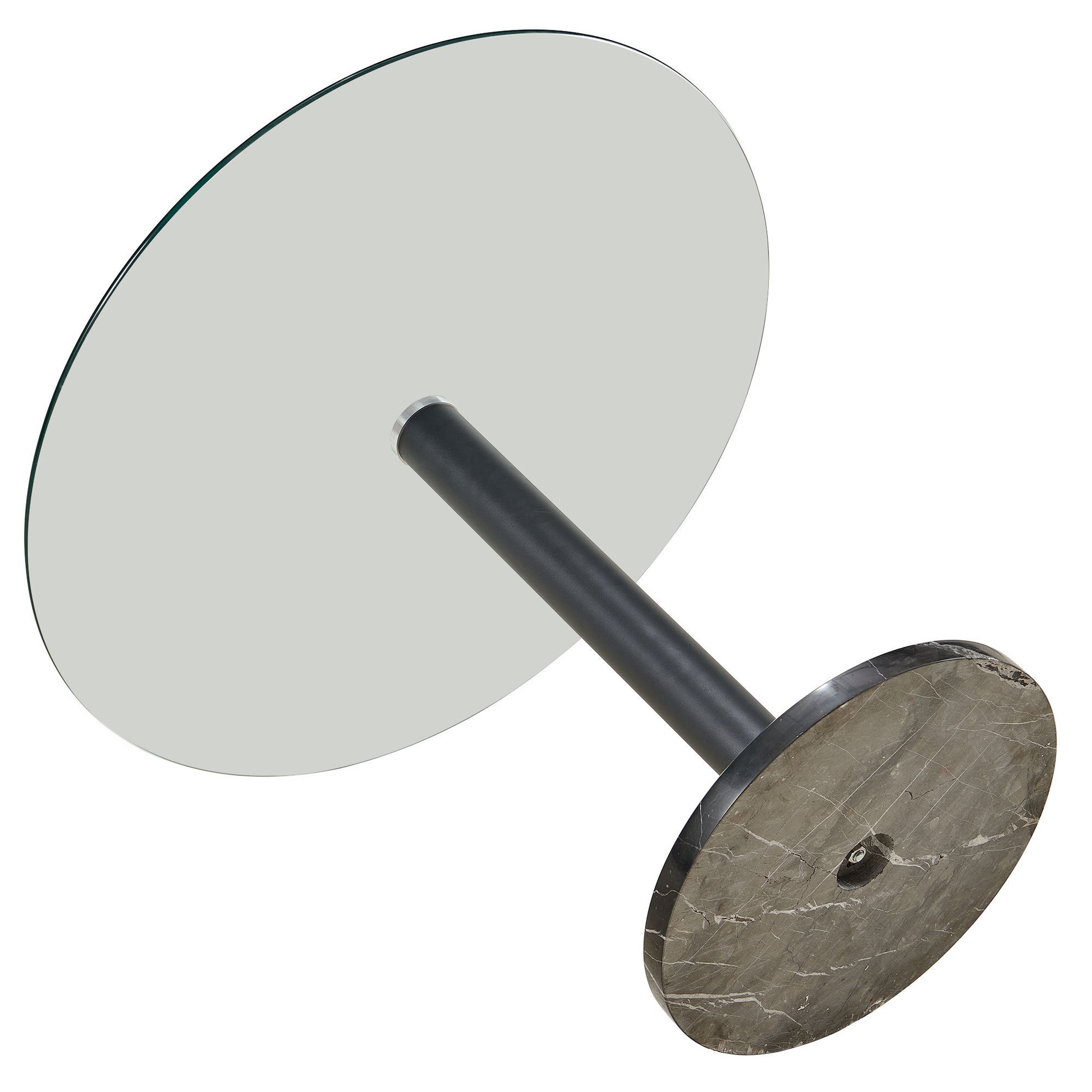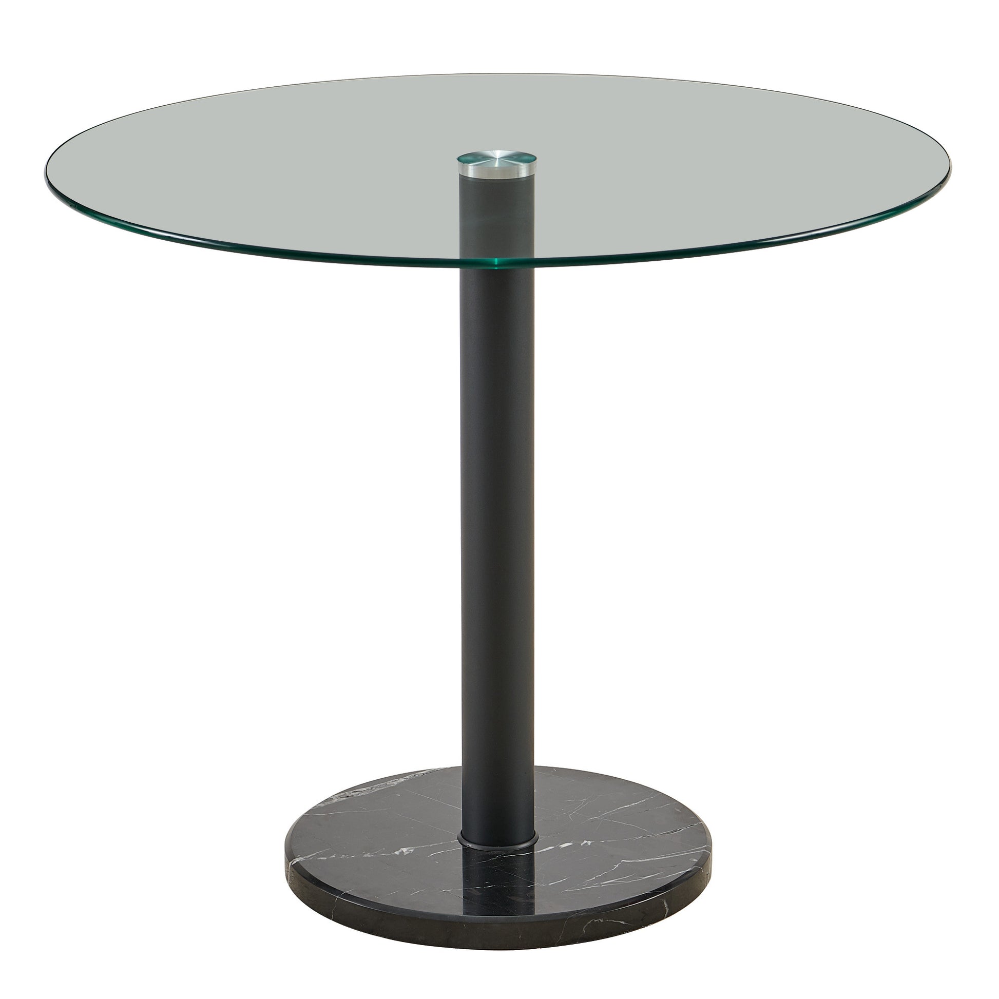 - With a hard-wearing tempered glass top and sturdy black marble chassis, this round modern coffee table is built to last and withstand daily use.