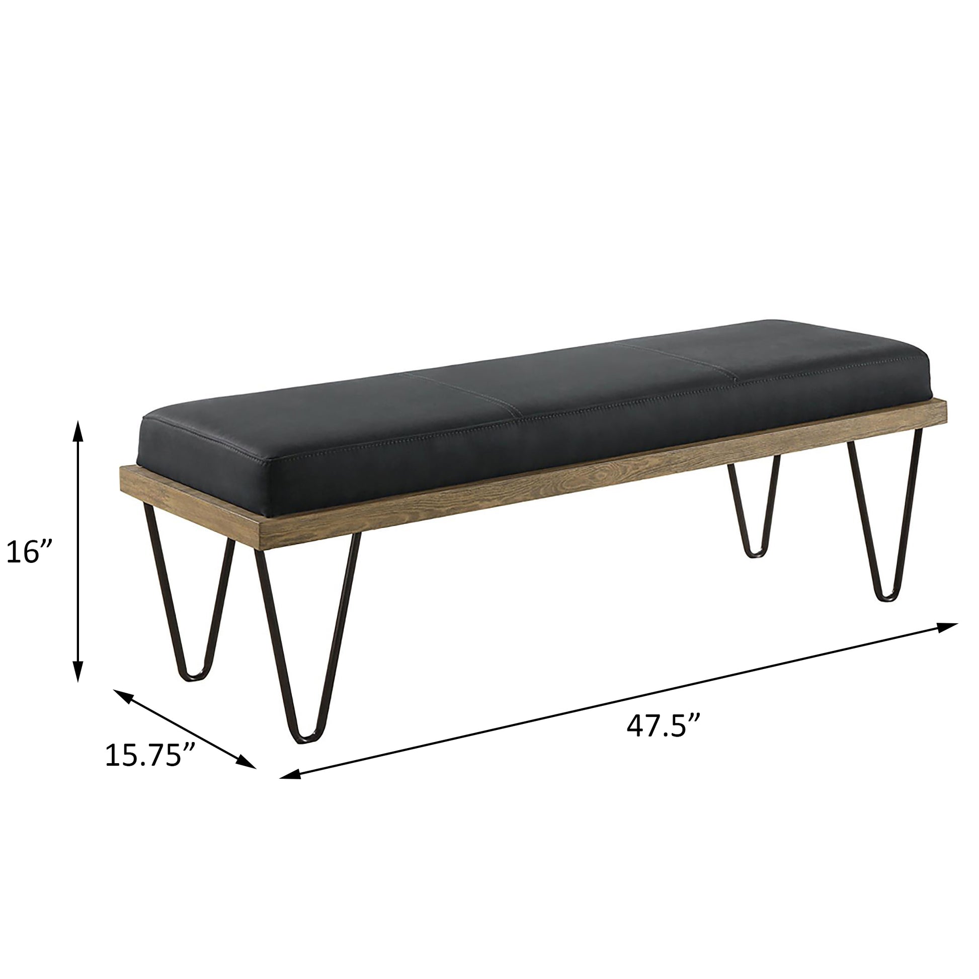 Create an industrial vibe in your home with this simply yet beautifully designed bench. Its light wood base sits atop black metal hairpin legs, and one long upholstered black leatherette cushion provides comfortable seating in a hallway or anywhere around your home.