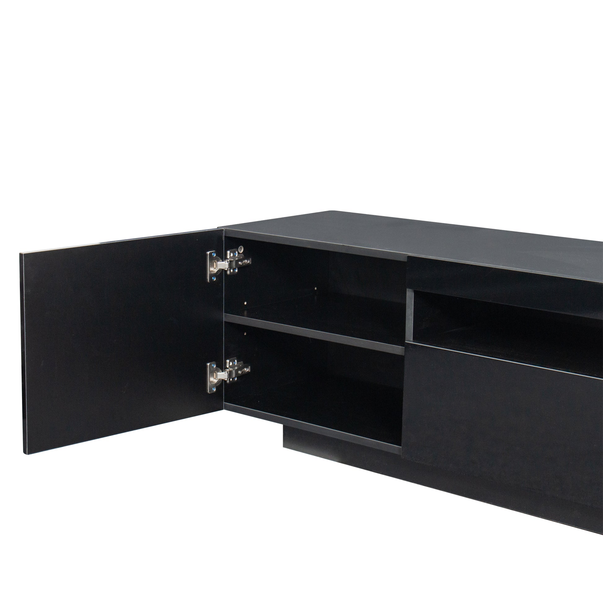 TV Cabinet Wholesale, Black TV Stand with Lights, Modern LED TV Cabinet with Storage Drawers, Living
