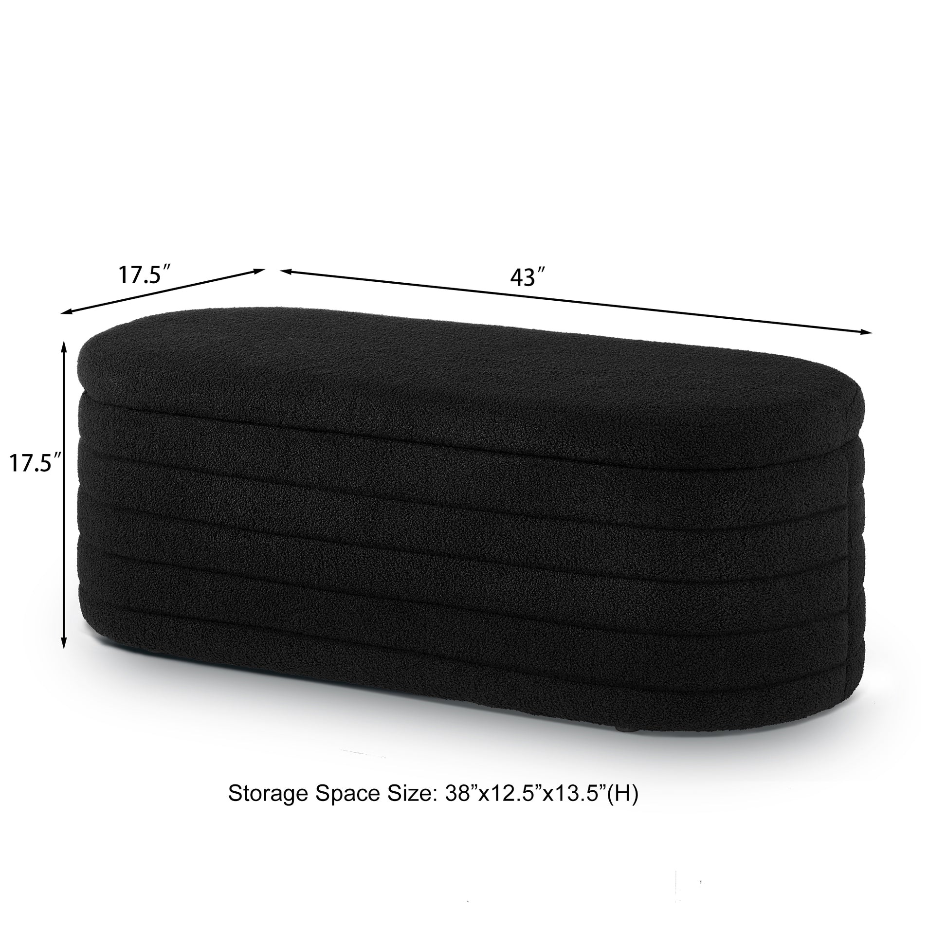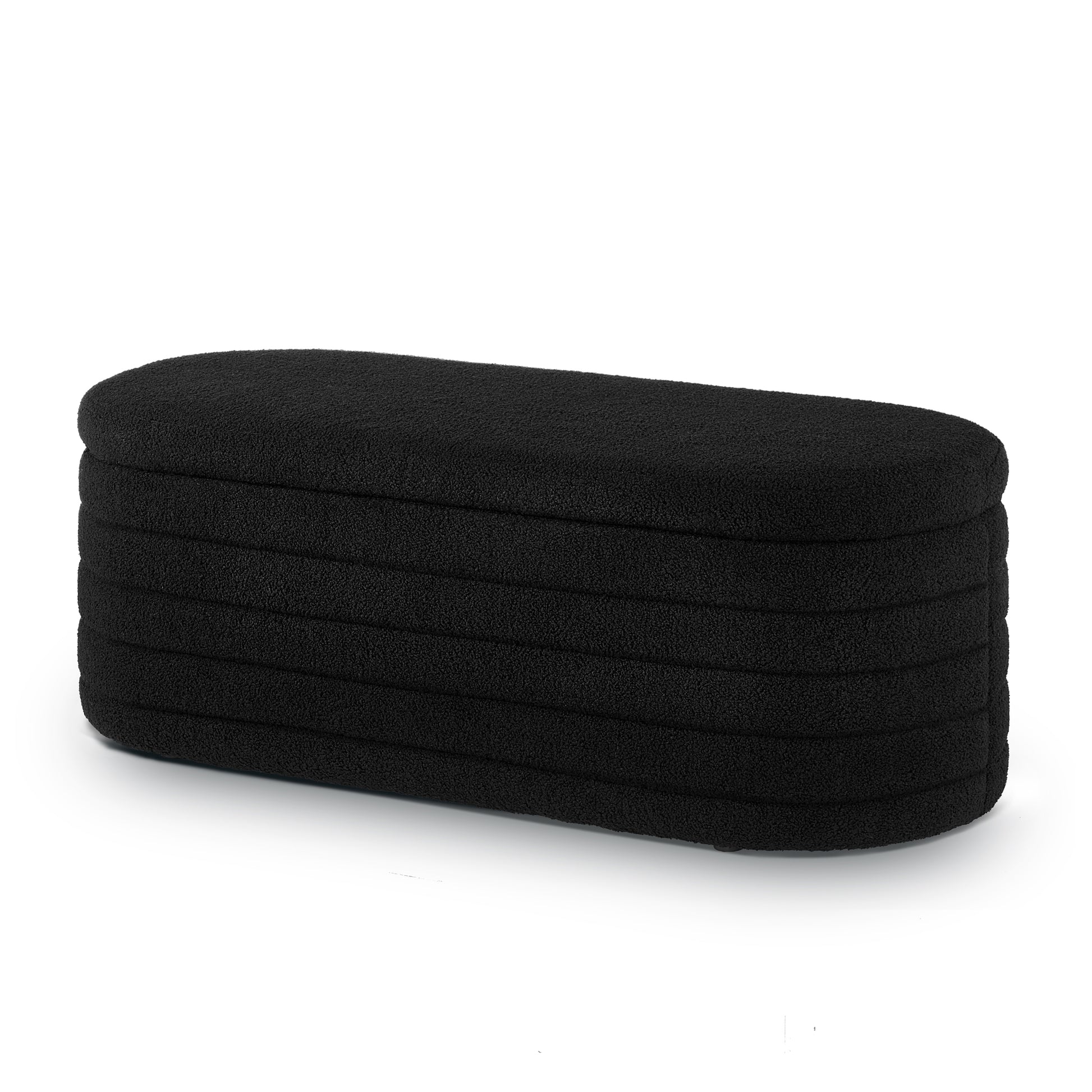 This oval storage bench exudes elegance and practicality, featuring a teddy fabric that provides a soft and comfortable seating experience. The luxurious material not only adds a touch of refinement but also ensures a cozy and inviting feel for users.