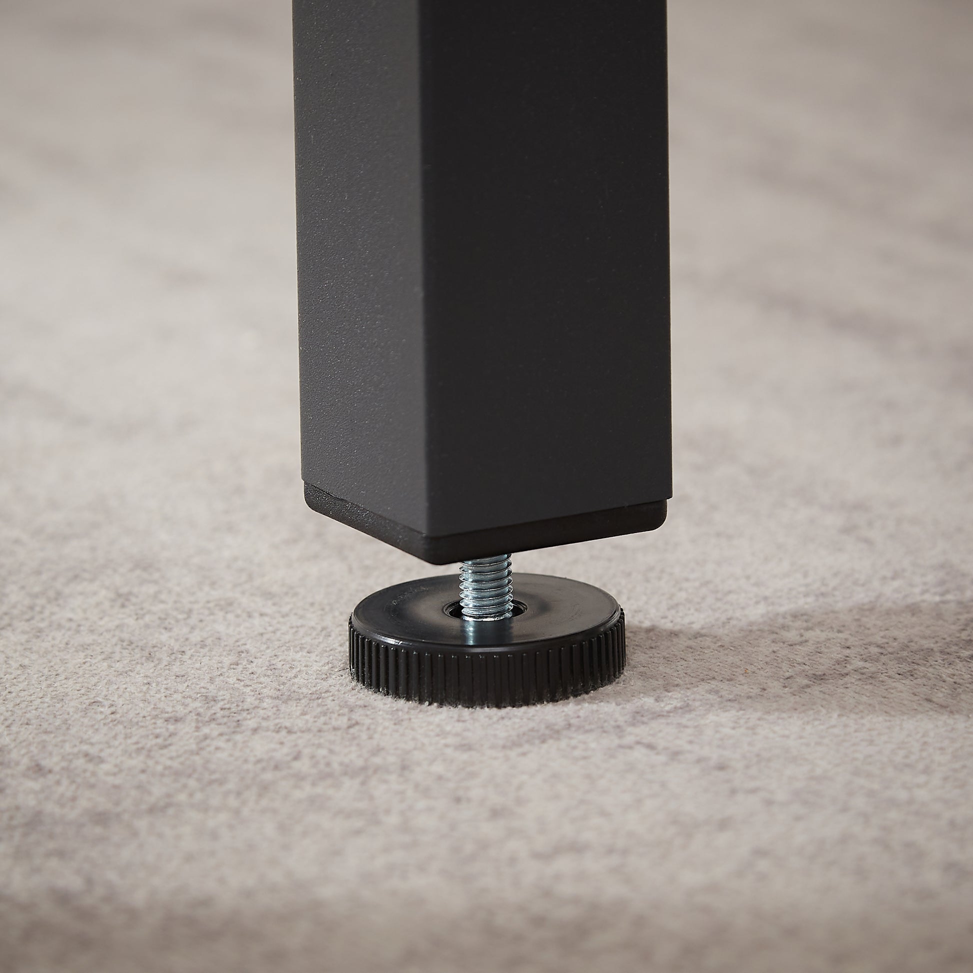 The combination of particle board and steel is more durable and the black color presents a unique industrial look.