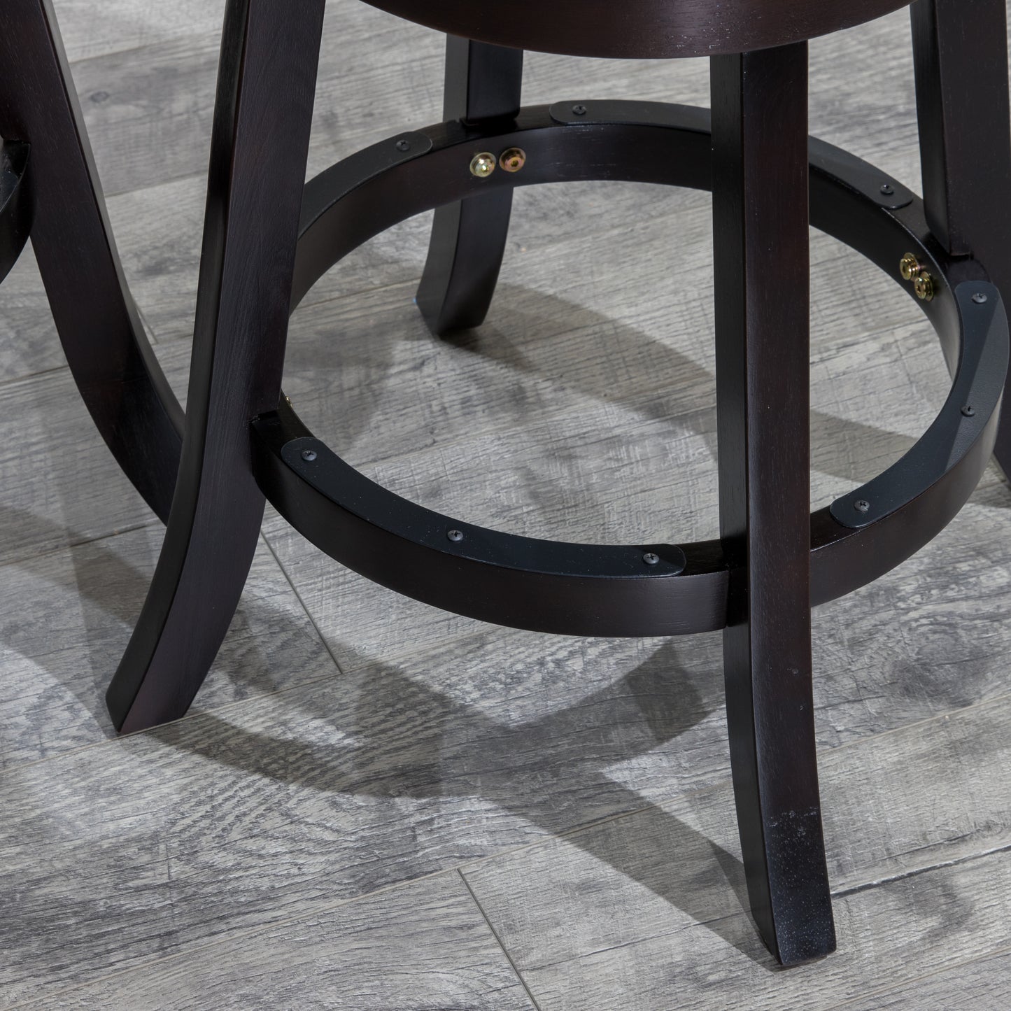 - BUILT TO LAST: These fashionable stools are comfortable and sturdy with a solid hardwood frame, an industrial 19 cm swivel mechanism that can hold up to 300 lbs., flared legs for stability attached with two bolts per leg for strength. Bonus metal foot plates protect the stool from footwear damage and floor protectors to keep your floors scratch free.