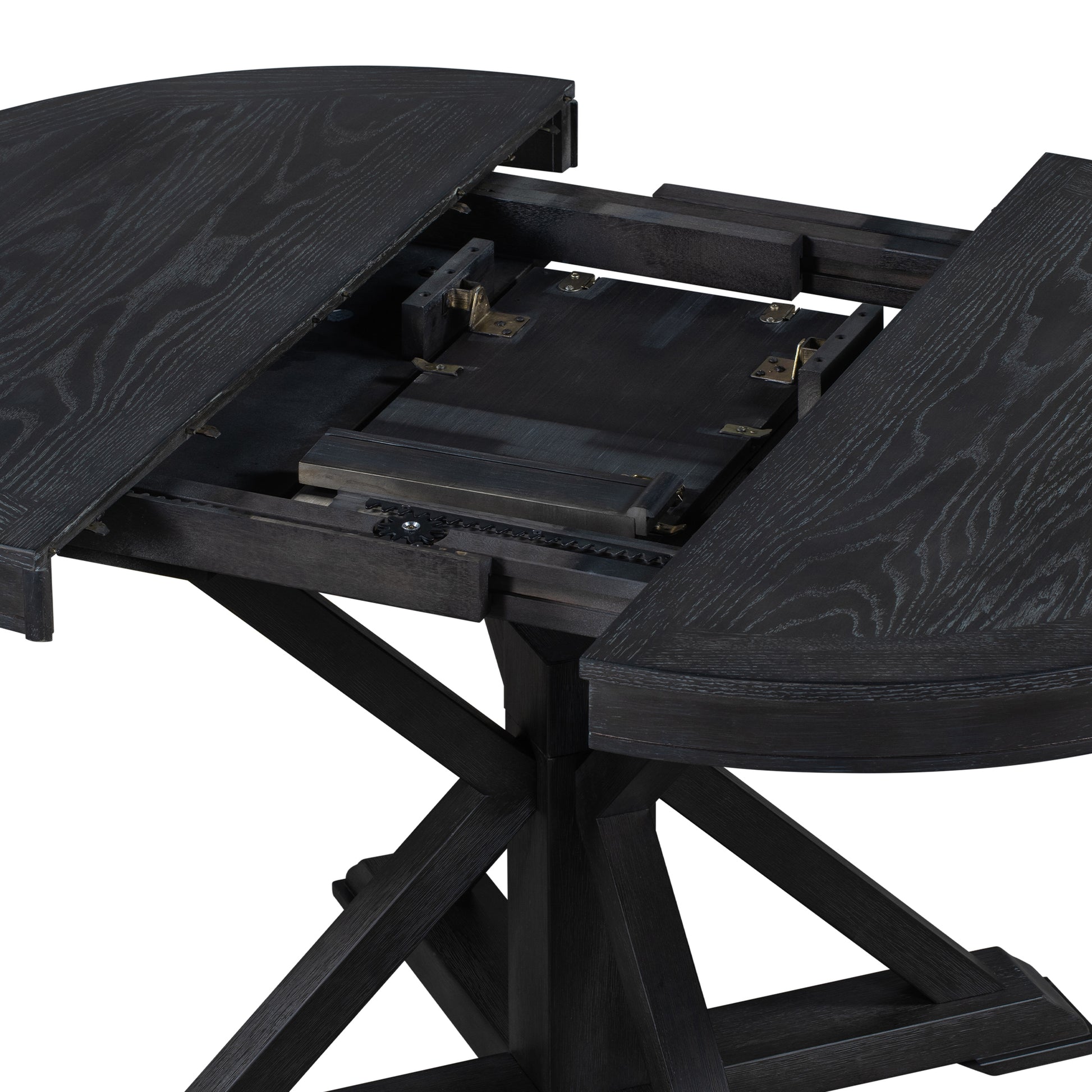 - Extendable Table Top: The dining table equipped with a lovely 12" butterfly leaf, which can help you adjust the table top from 42" to 54" according to the number of dinners, greatly seating up to 6 people. You just need to insert the self-storing leaf, and you can get an oval tabletop. If you want to change the tabletop to a round shape, you can enfold the butterfly leaf and then hide them beneath the tabletop.