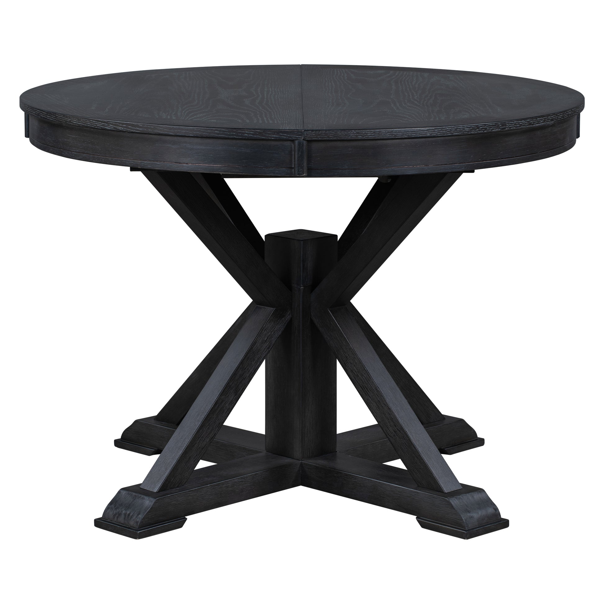 The dining table equipped with a lovely 12" butterfly leaf, which can help you adjust the table top from 42" to 54" according to the number of dinners, greatly seating up to 6 people. You just need to insert the self-storing leaf, and you can get an oval tabletop. If you want to change the tabletop to a round shape, you can enfold the butterfly leaf and then hide them beneath the tabletop.