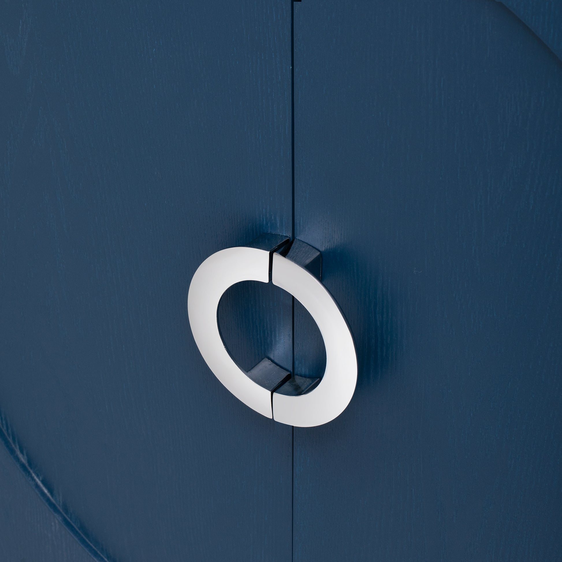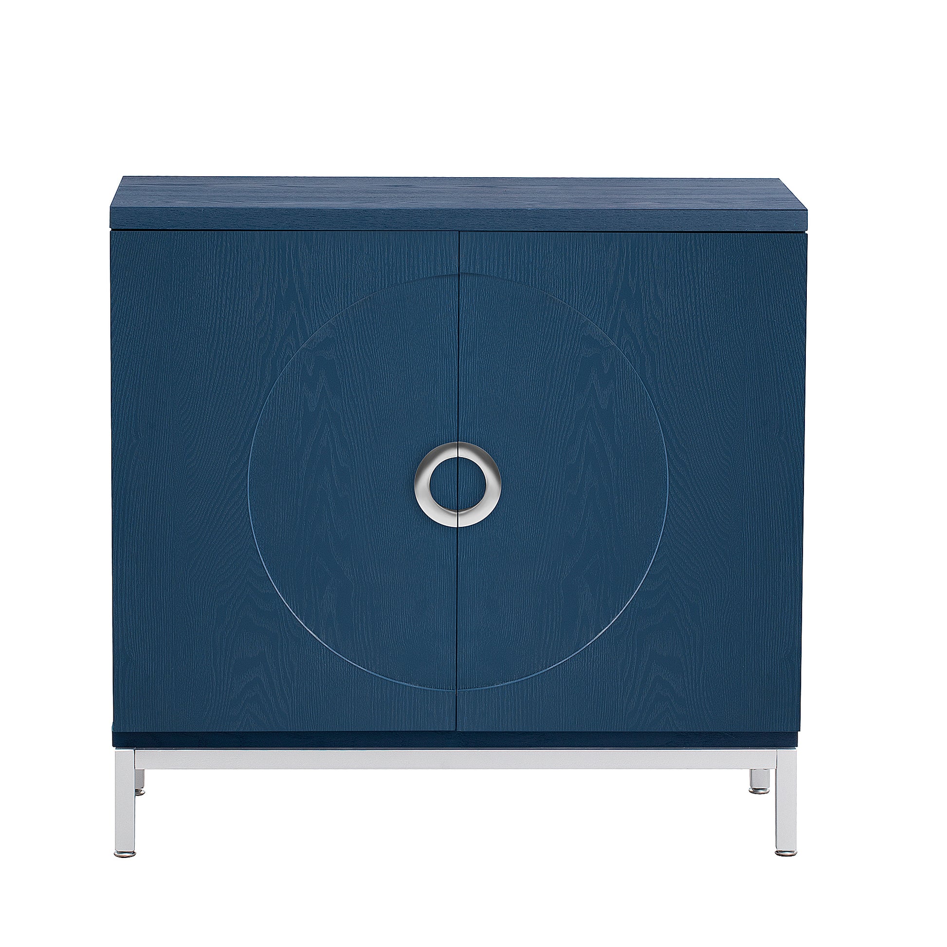 - The wood striped finish and black/white/navy cabinet combine aesthetics and practicality with clean, neat lines that meet the aesthetic standards of every era. The surface fraxinus mandshurica veneer increases the solid wood grain texture. Circular door and handles design create a sense of symmetry and layering beauty which can enhance the overall sense of balance.