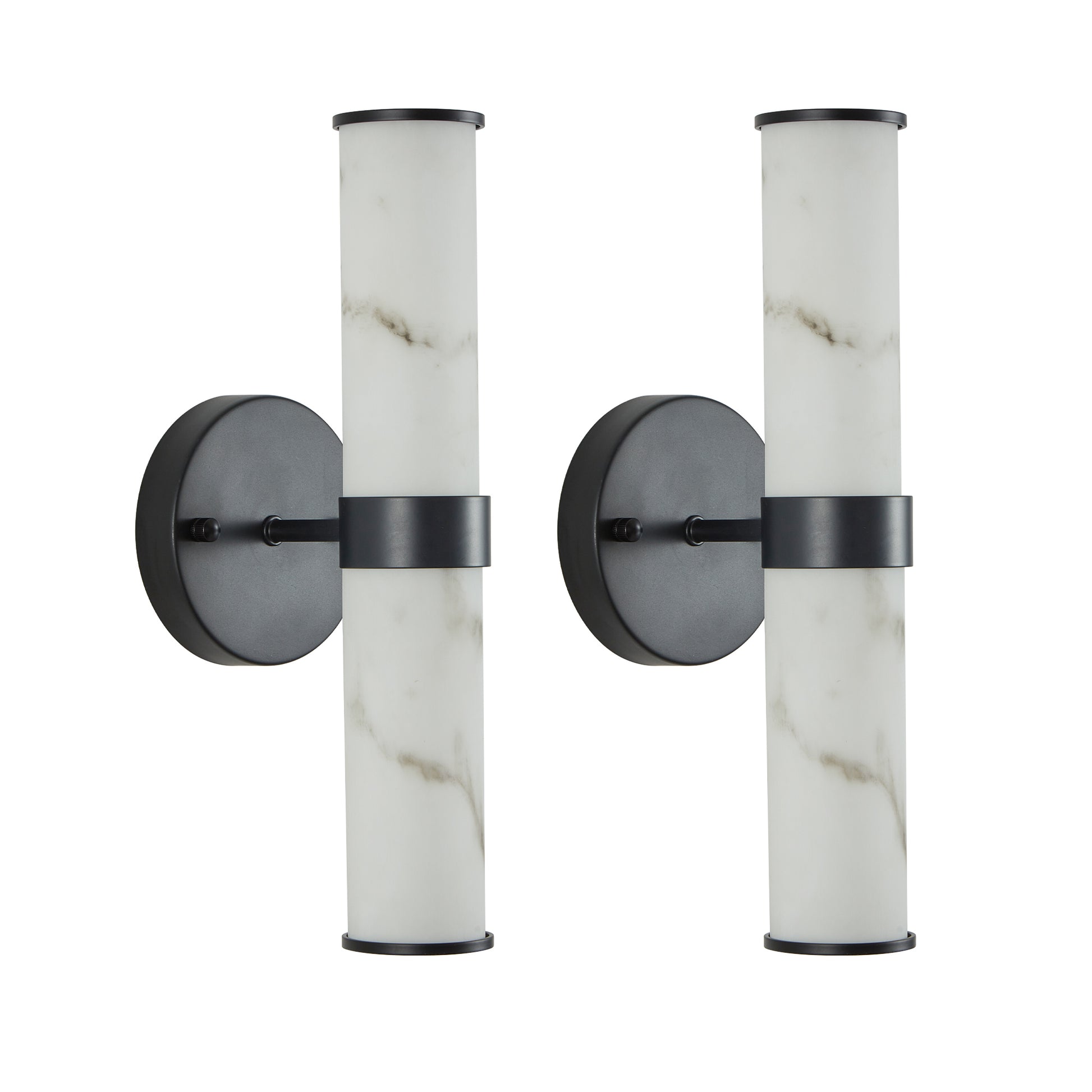 Resin Imitation Marble Texture Wall Light with Black Iron Metal Frame,Set of 2,For Indoor