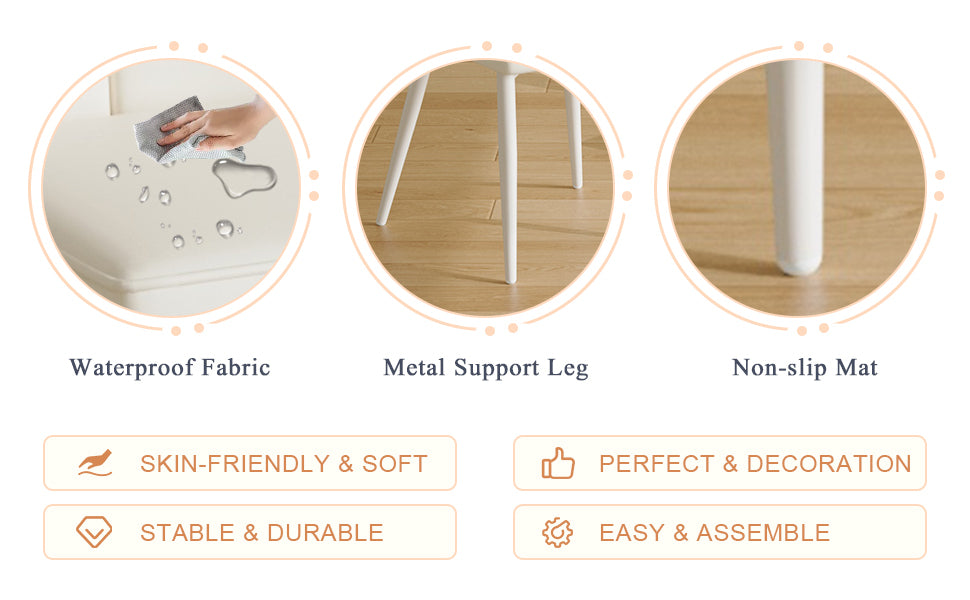 - Cushion+cushion material: PU+sponge. Legs: Metal