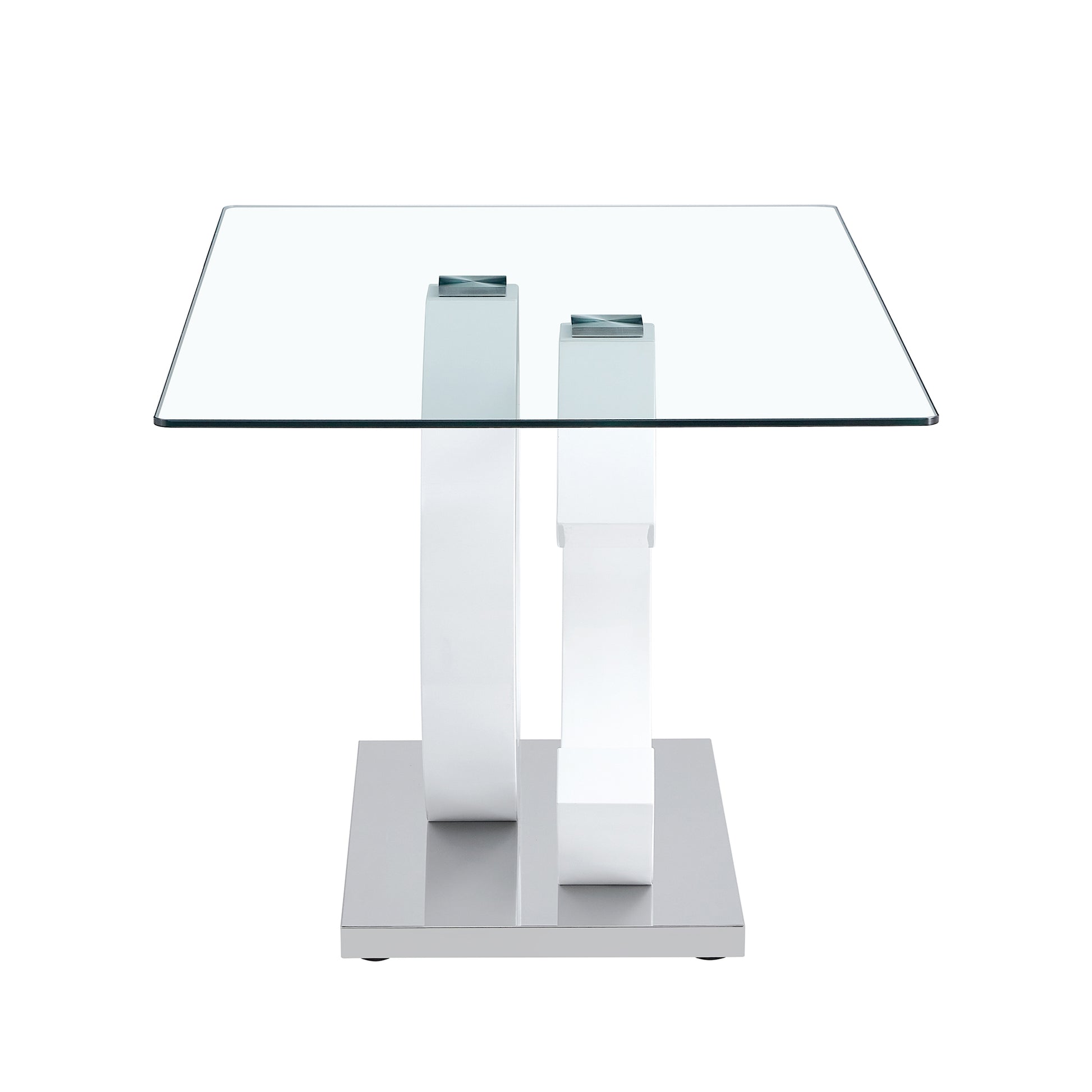 - Glass dining table with 0.39 "tempered glass tabletop, white MDF OC shaped bracket and metal base