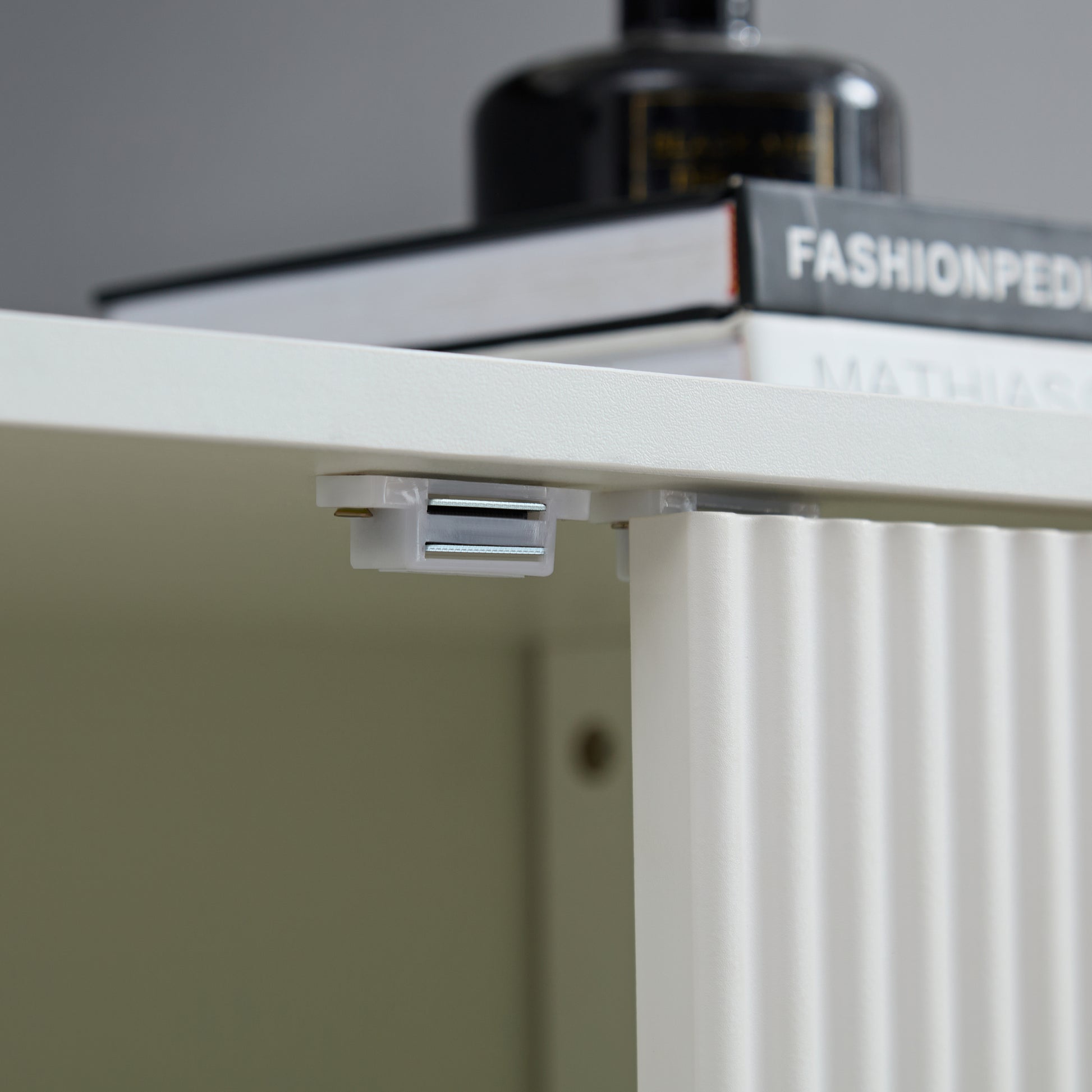 Sideboard with wavy texture buffet cabinet, white accent cabinet with door, modern bookcase for kitc