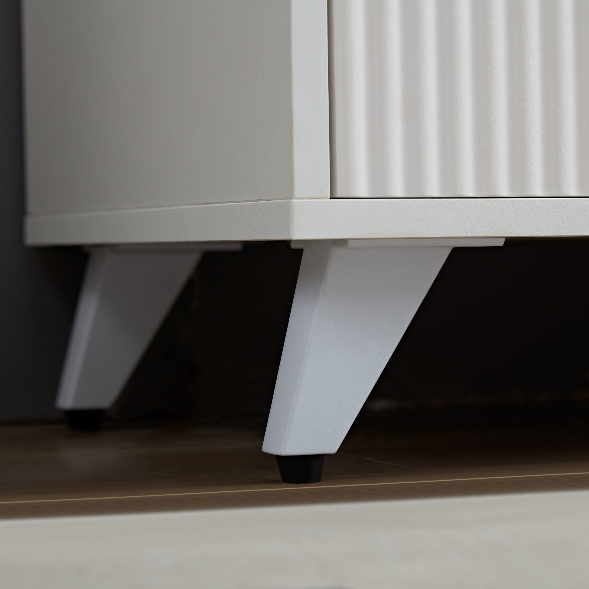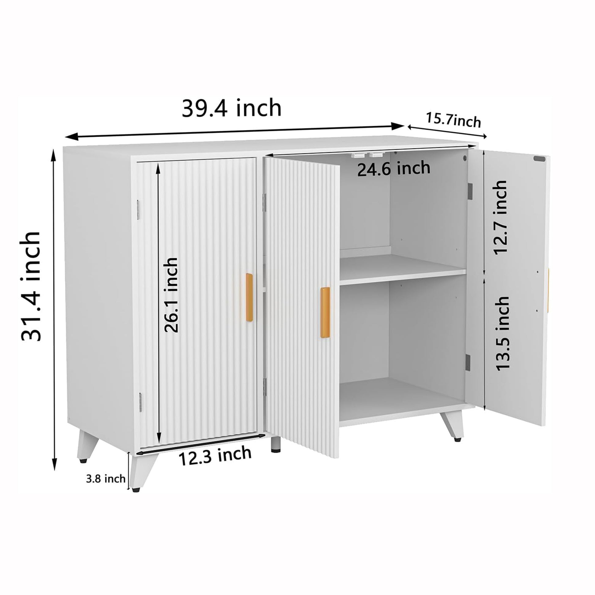 - 【Unique Ripple Design】This buffet cabinet with storage accentuates the white fluted textured body and brass legs that are eye-catching without being overpowering.