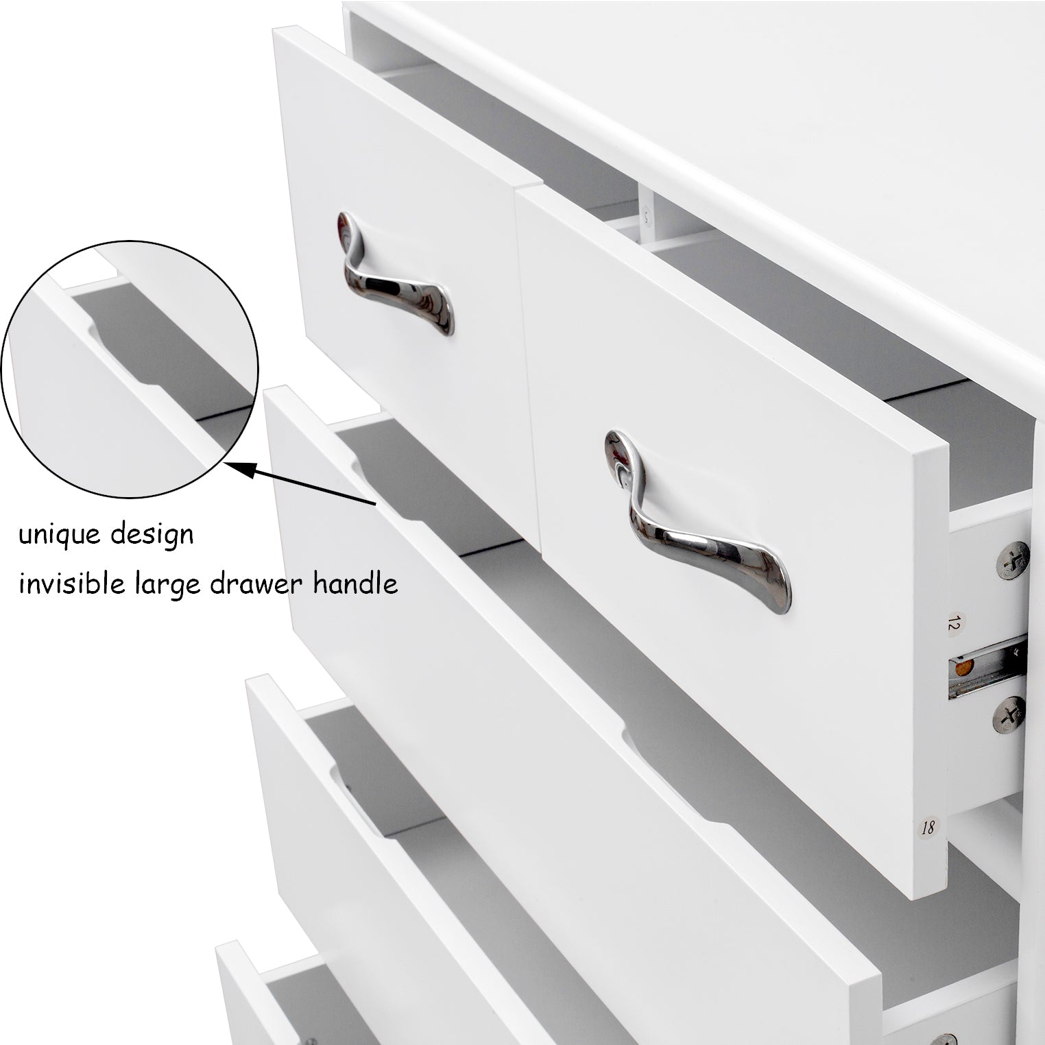 - High Quality: White color, excellent painting process- we have 3 times painting process in total to ensure the painting shows perfectly on the products surface. E1 degree good quality MDF material,Metal slides for the drawers can make them more smooth when you pull open the drawers.