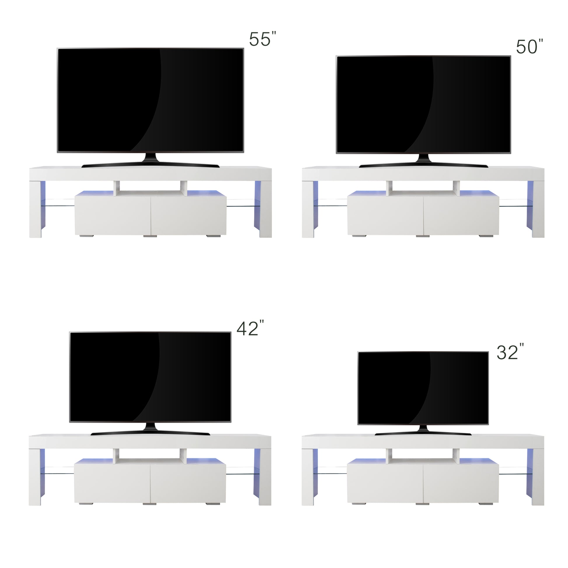 Modern White TV Stand, 20 Colors LED TV Stand w/Remote Control Lights
