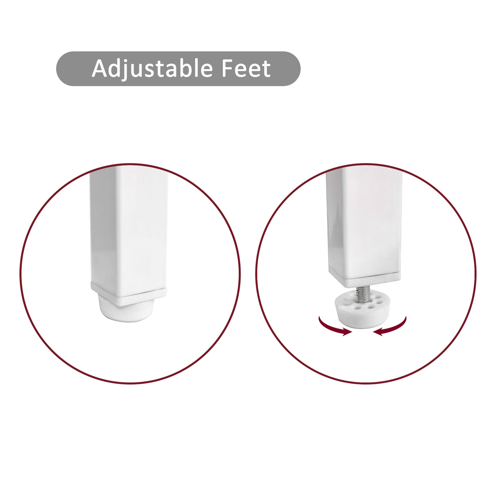 - 5.The metal table legs ensure that it is sturdy and durable.The adjustable PVC feet can keep it steady.