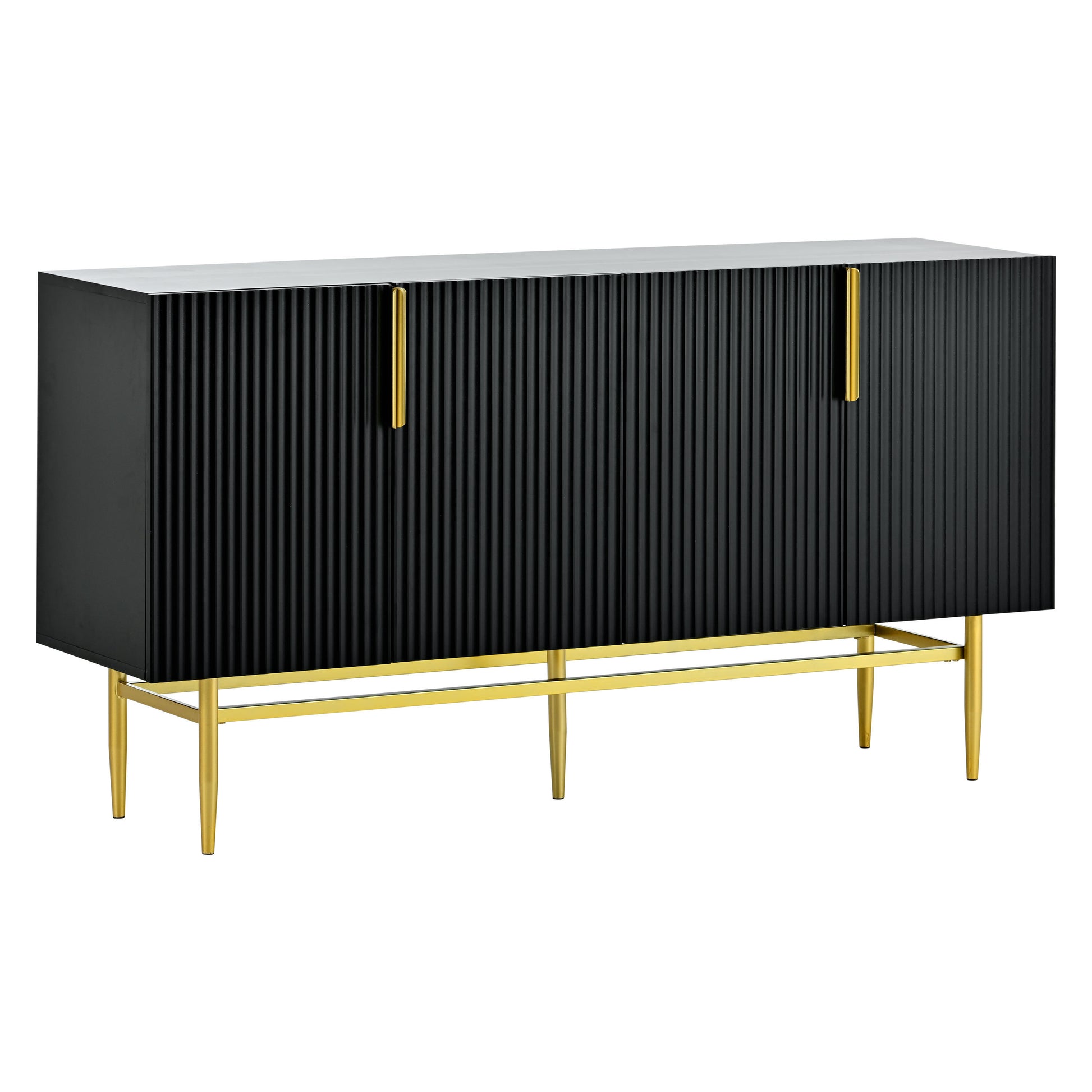- A sideboard with four doors will provide plenty of storage space for you. In addition, the internal shelves can be adjusted to three different heights, which you can adjust or remove according to your needs. Plates, bowls, wine glasses or small appliances of different sizes can be put on the sideboard. You can also put it in the bedroom to store clothes. Product Dimensions: 60"L x 15.2"W x 31.5"H.