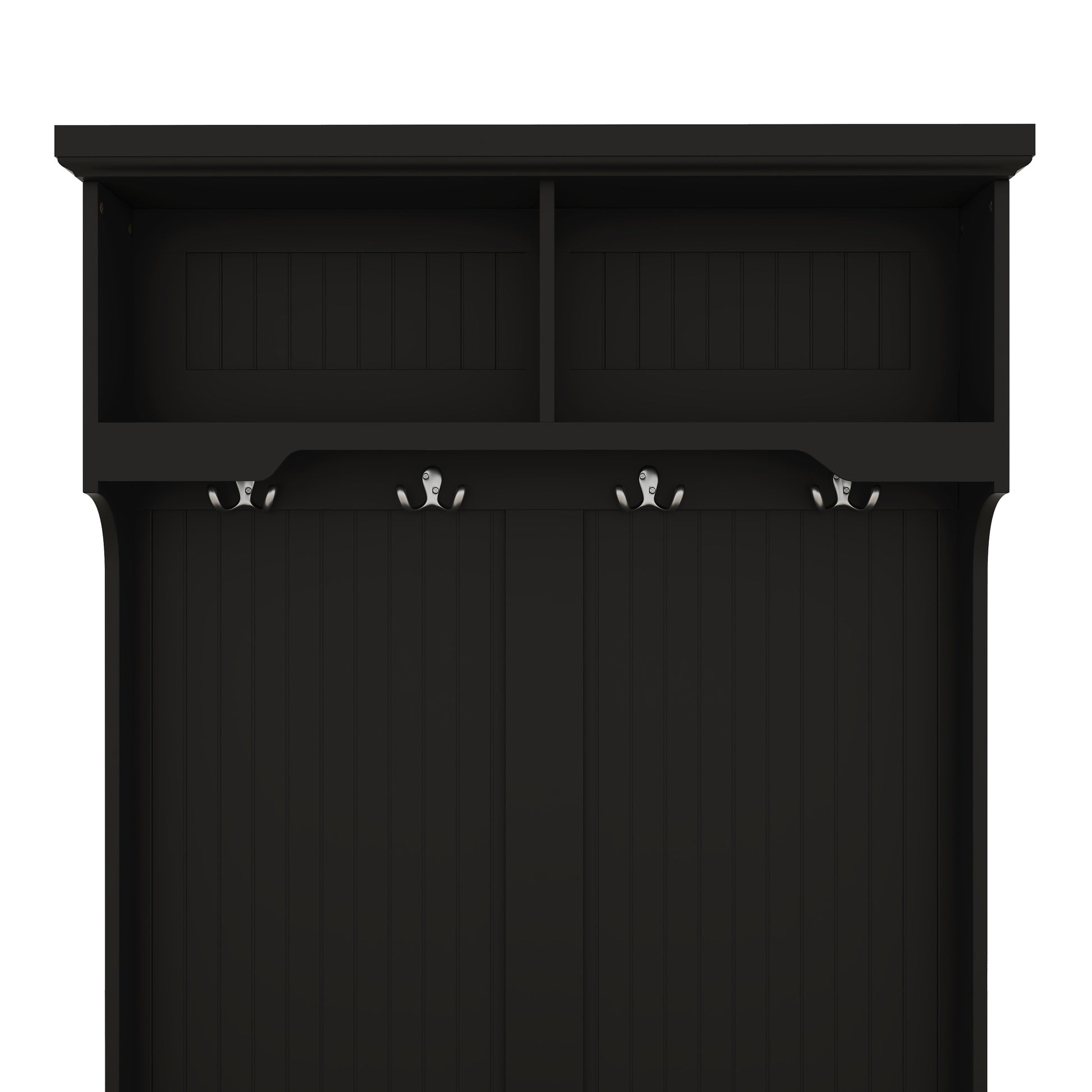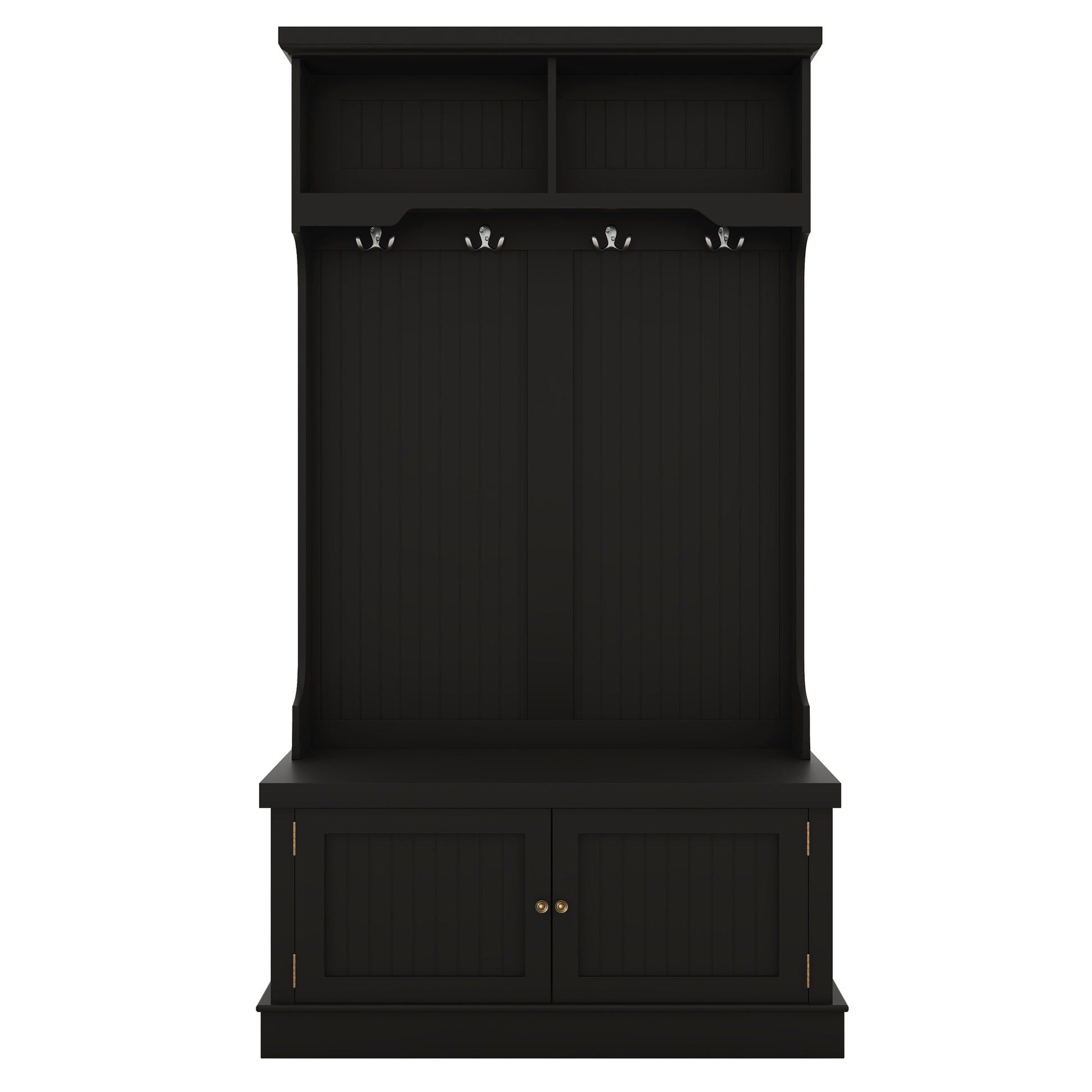 - 4-in-1 Design- This multifunctional hall tree is an Integrated coat rack with hooks, a shoe bench, a storage cabinet, and a display shelf, designed to fit for your entryway, laundry room, closet, bedroom, or mudroom use.