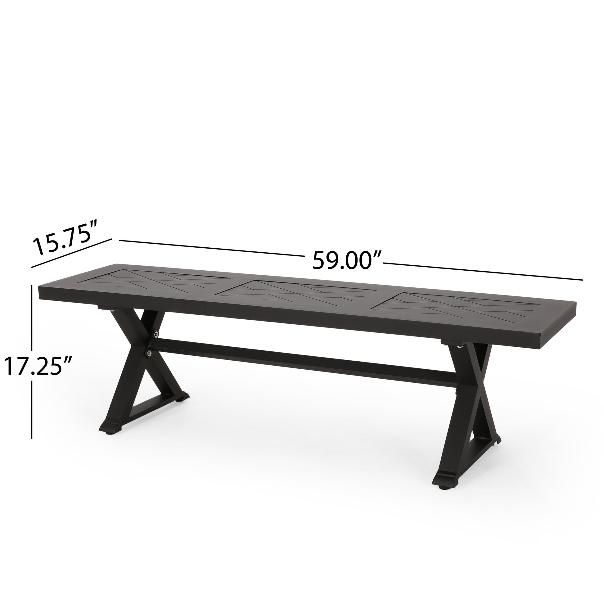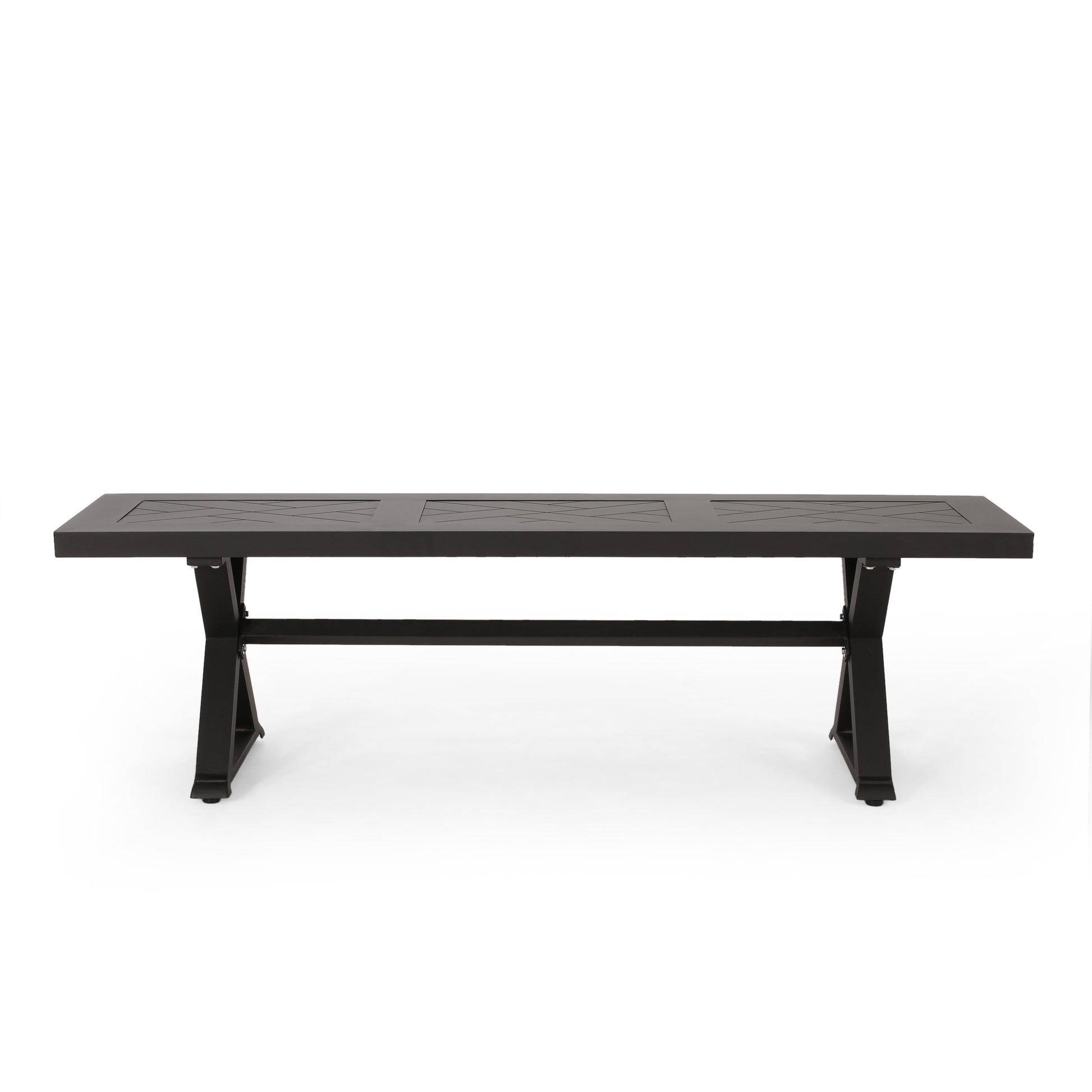 Pull up your new favorite outdoor bench to your dining table to complete its look. Made from aluminum, our dining bench offers reassuring durability and a polished look to your home, making this the perfect accent piece for your dining set. The legs are finished with a beautiful X-shape, bringing a rustic influence to this modern design that gives any backyard or patio space a sleek upgrade.