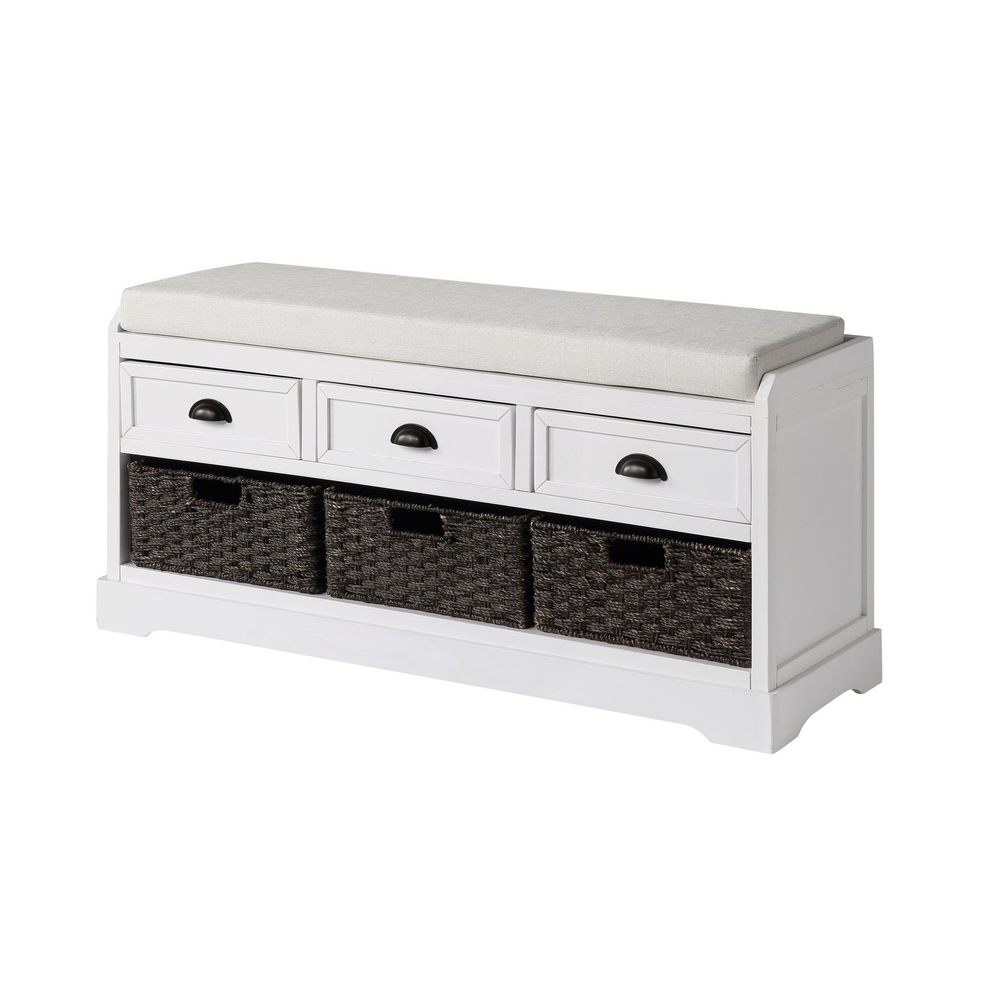 Cut the clutter in your entryway,mudroom,or walk-in closet with this essential storage bench. It's perfect for stowing boots and flats below and offering guests a convenient spot to sit down and remove shoes. Made out of solid and manufactured wood, this bench can be easily cleaned with a quick wipe of a dry cloth.
