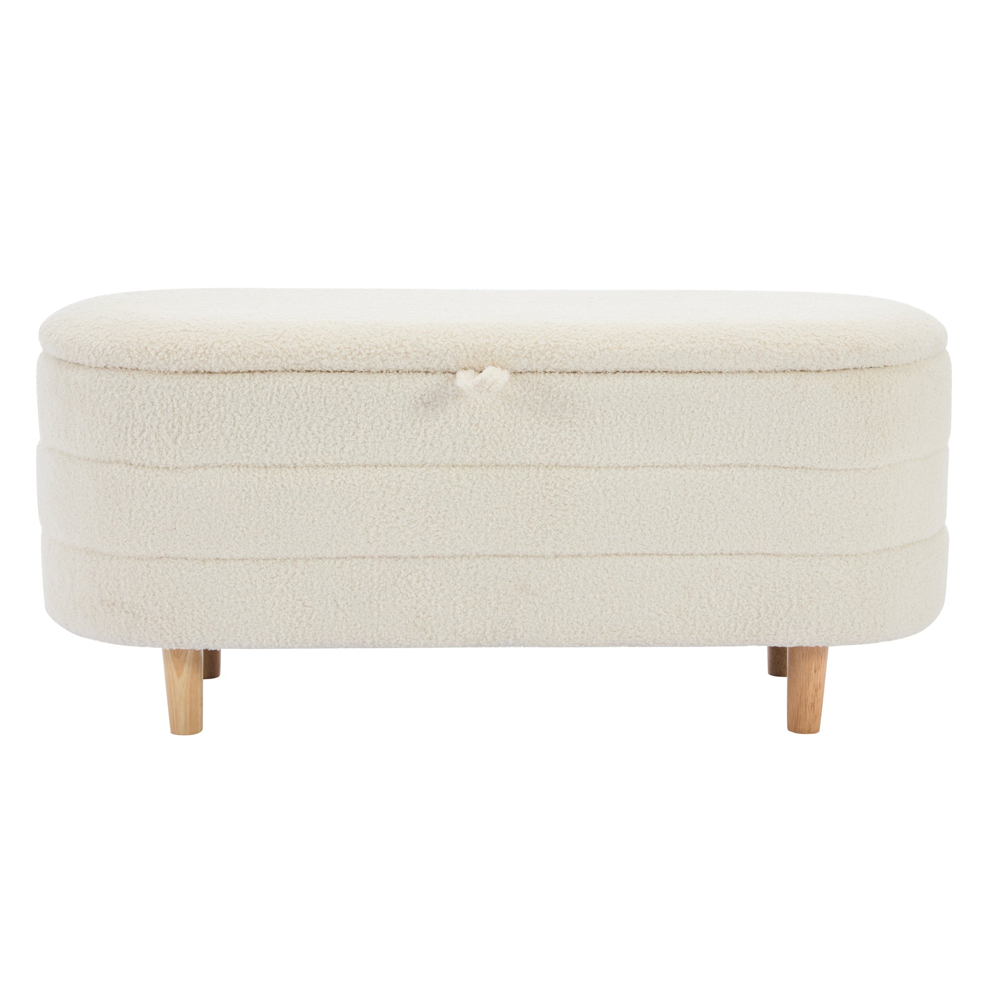 Elegant Upholstered Sherpa Fab Storage Ottoman with Wood Legs, Storage Bench for Bedroom