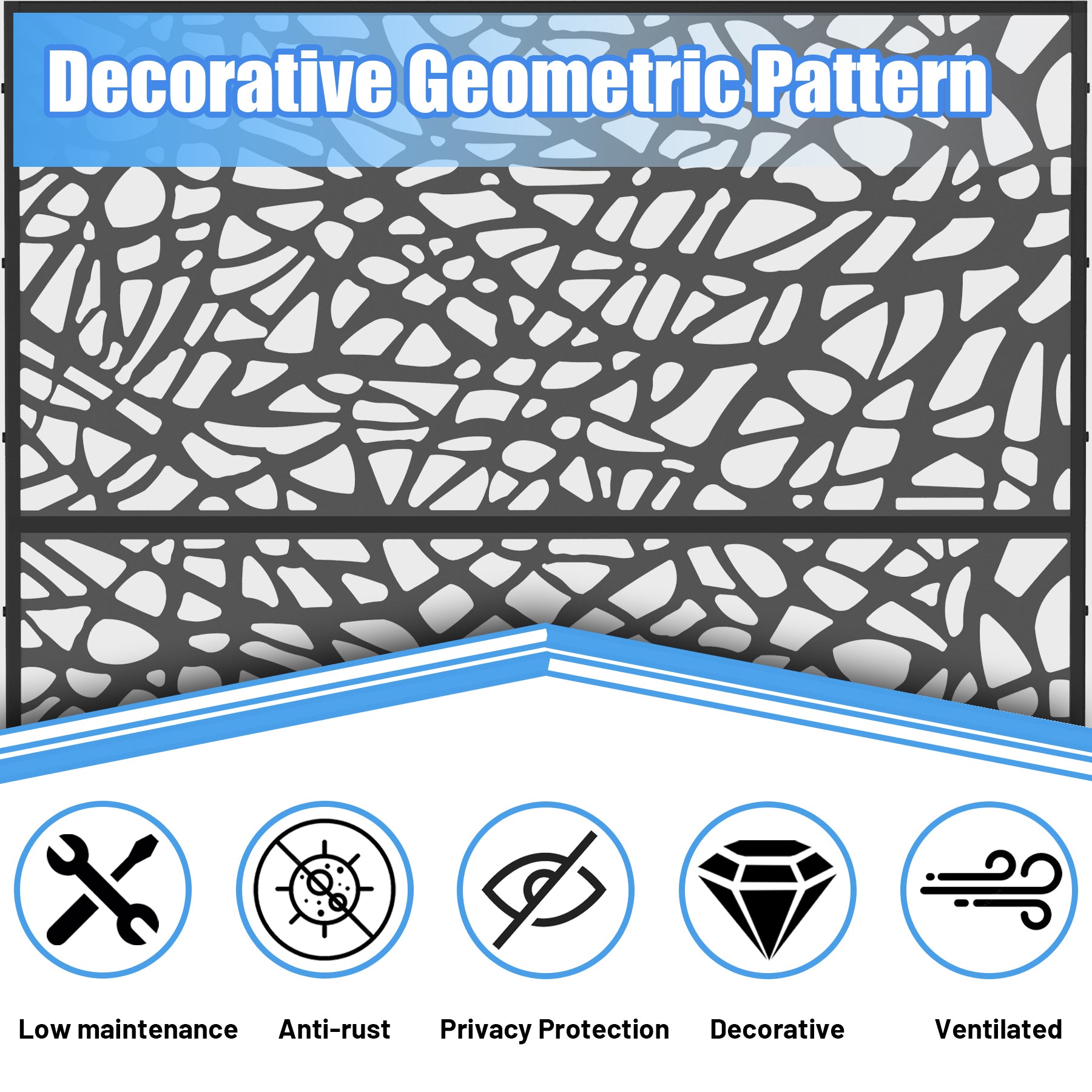 - Freestanding: The screen is sturdy enough to stand on its own. Use four hex-head sleeve Anchors to fix the privacy screen on solid ground for a strong wind area.